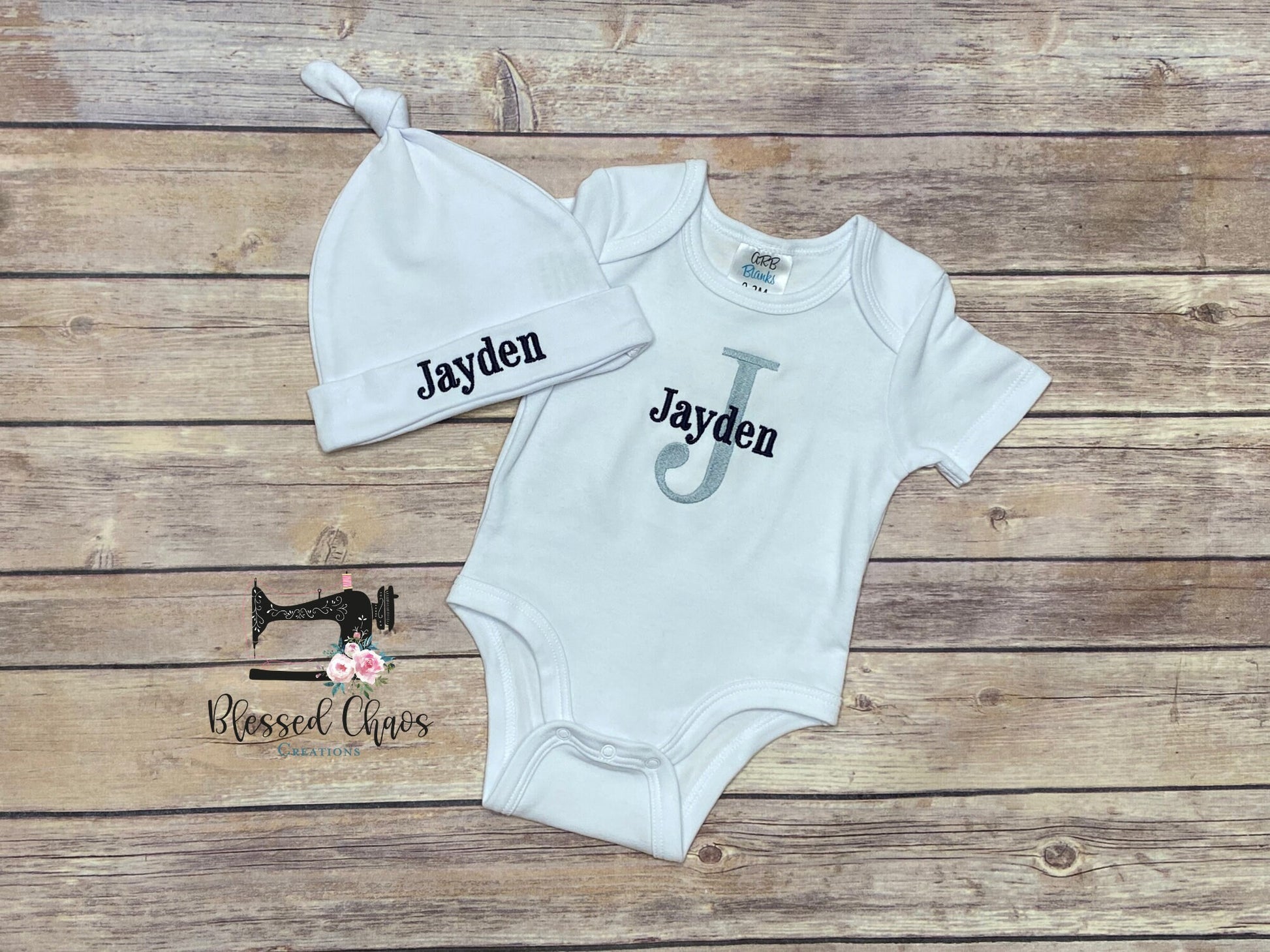 Personalized Baby Boy Bodysuit, Monogrammed Newborn Coming Home Outfit, Custom Embroidered Baby Boy Bodysuit, Shower Gift For Baby Boy