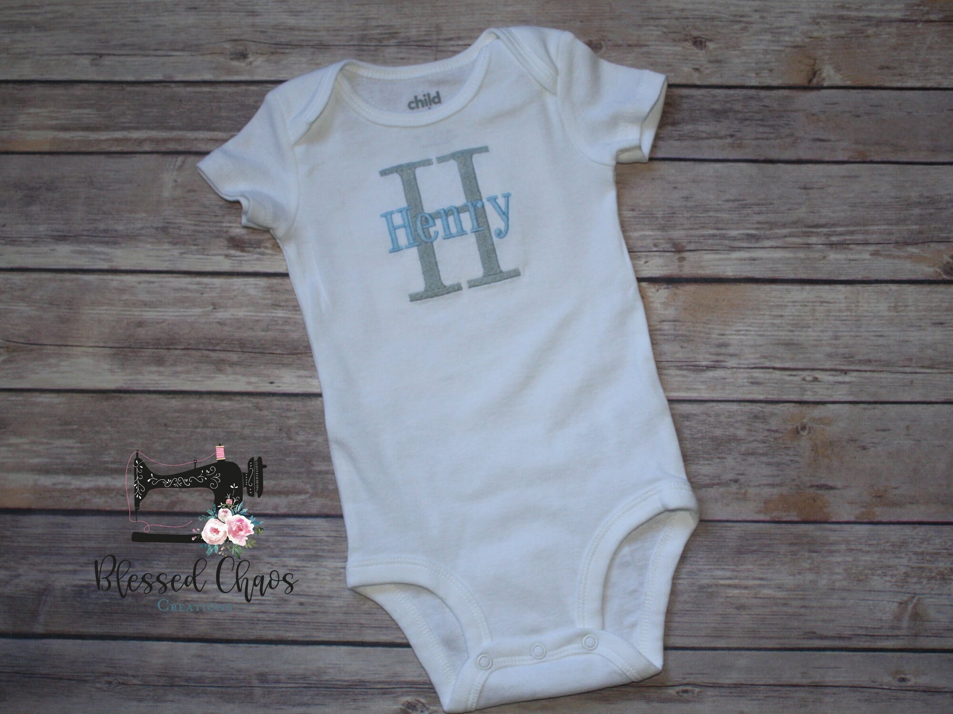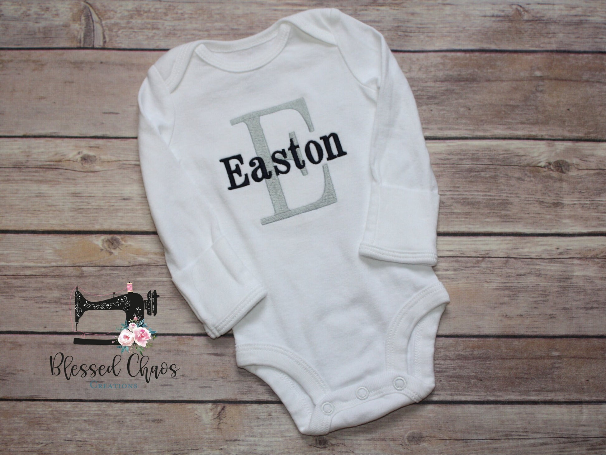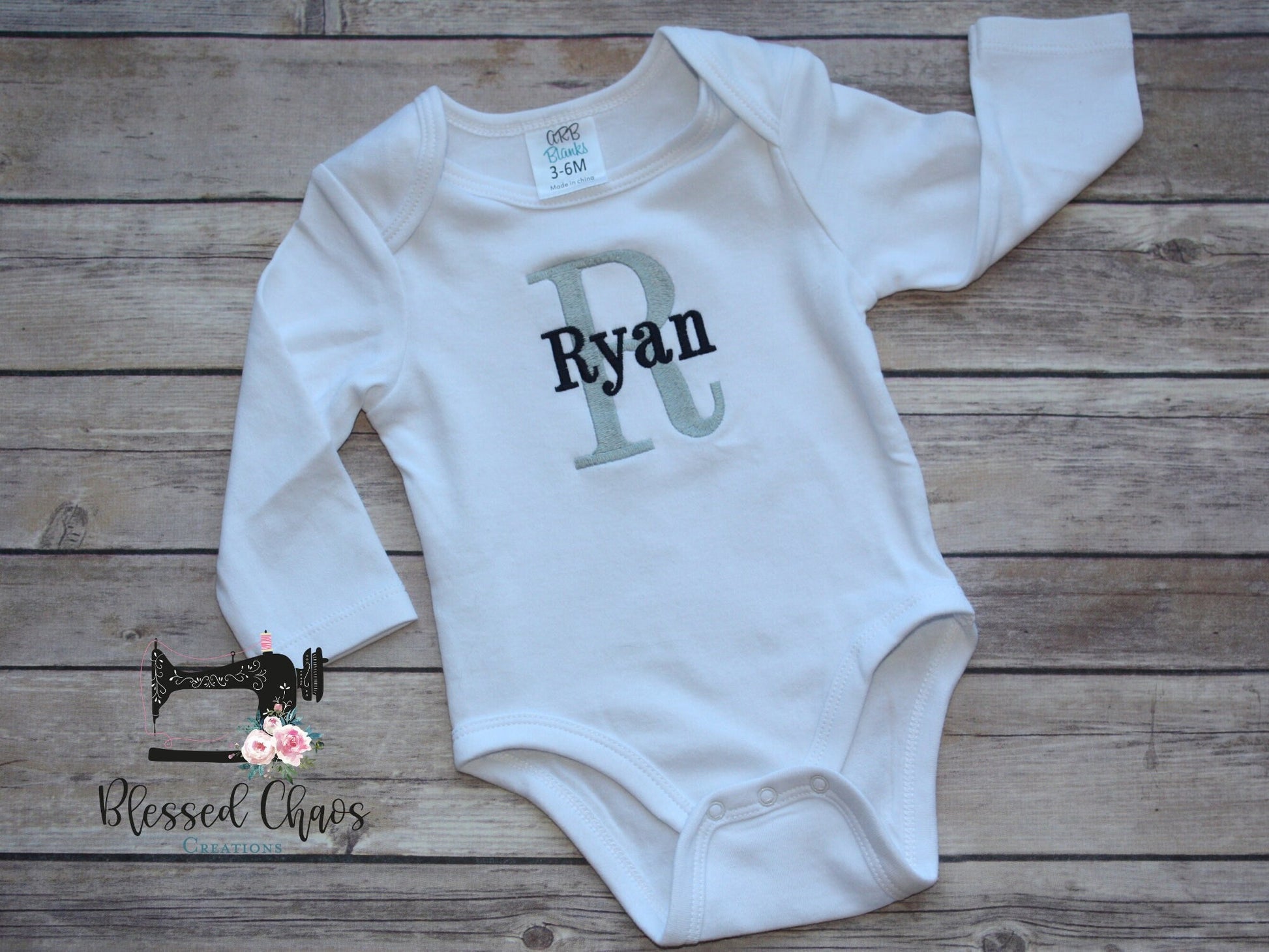 Personalized Coming Home Outfit, Monogramed Baby Boy Romper, Baby Boy Monogrammed Bodysuit, Shower Gift For Baby Boy